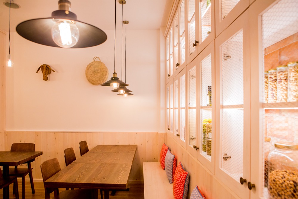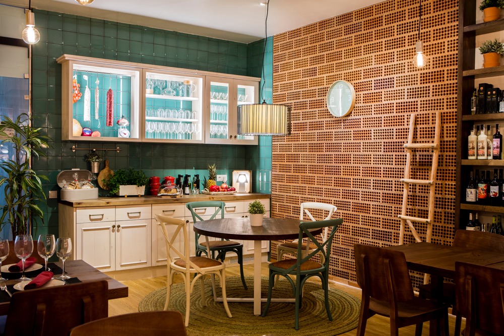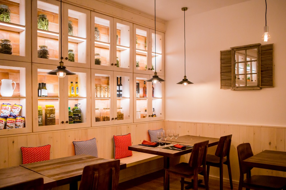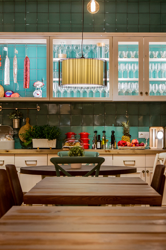 El nostre objectiu era llavors crear una experiència gastronòmica completa per a tot aquell que decidís menjar al restaurant, i això passava fer una proposta que impliqués el gaudi de tots els sentits. D’alguna manera, la gastronomia l’havies de veure, sentir, tocar i no sols degustar. És per això, que vam trobar oportú recrear una ambientació d’antiga masia catalana, amb la cuina vista, unes fresqueres on s’exposava tot el producte de la terra, taules de fusta envellida i enrajolats per les seves parets.