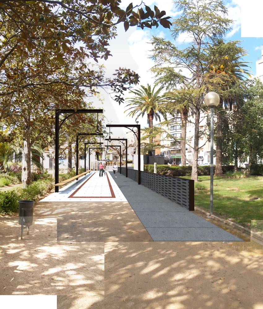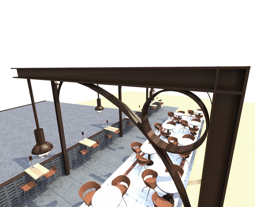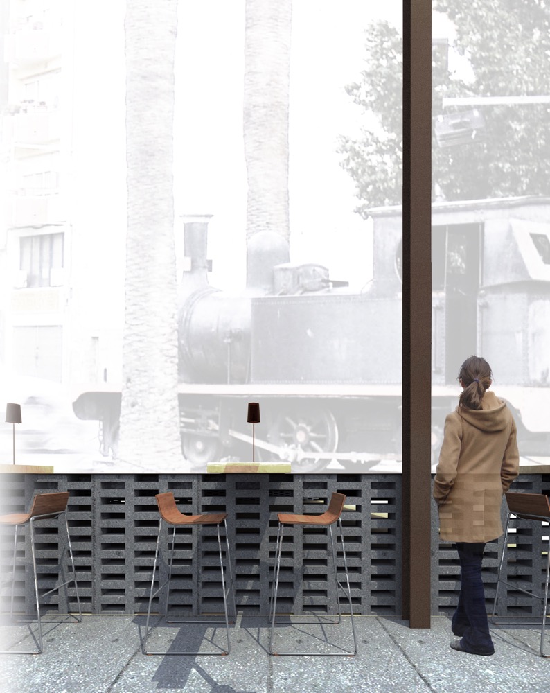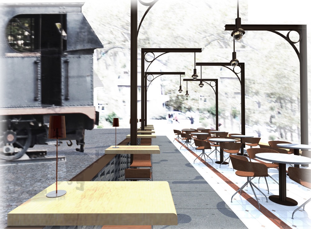 La proposta s’ubica a un dels passatges del Parc Teodor Gonzàlez en el qual es troba la locomotora original de l’històric Carrilet. La proposta rau en crear un espai complementari a la “terrassa urbana” del Restaurant El Parc de Tortosa. Si aquesta segona ofereix un servei complet de restaurant a l’aire lliure, la nova terrassa prestaria més bé un servei de cafeteria i cocteleria exterior. La idea és inspirar-se en les antigues terrasses compostes de petites taules tipus “Cafè Paris” per condicionar l’entorn més immediat de l’antiga màquina del carrilet i dignificar-la com cal. El projecte intenta defugir de falses recreacions que poguessin arribar a convertir l’espai en una cafeteria temàtica. Simplement, s’extrauen idees i conceptes del seu context històric i es fórmula un solució suggerent per l’usuari i integrada a l’espai públic del parc.